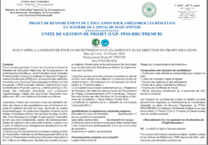 AVIS D’APPEL A CANDIDATURE POUR LE RECRUTEMENT D’UN (E) ASSISTANT (E) DE DIRECTION DU PROJET EDUCATION