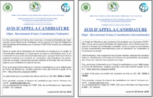 AVIS D’APPEL A CANDIDATURE Objet : Recrutement d’un(e) Consultant(e) National(e) et International(e)