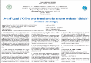 Appel d’Offres No : 2025-07-AO. MOYENS-ROULANT-UGP-PRRC