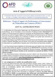 FOURNITURE DE FASCICULES SCOLAIRES (SCIENCES DE LA VIE