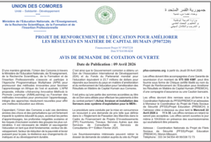 PROJET DE RENFORCEMENT DE L’ÉDUCATION POUR AMÉLIORER
