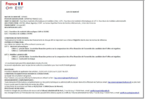 OBJET DU MARCHÉ : Fourniture matériels informatiques et mobiliers 2 lots : LOT1 : Fourniture de matériels informatiques et LOT 2 : Fourniture de mobiliers administratifs